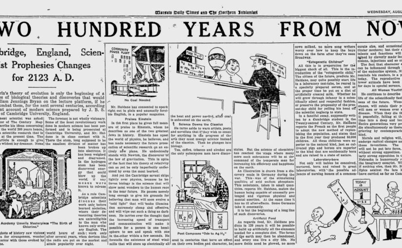 جمله معروفی وجود دارد که میگوید خبرهای امروز به آسانی تا فردا فراموش خواهند شد. حافظه جمعی کوتاهمدت است و اخبار نیز به سرعت تغییر میکنند. چه کسی میداند که فردا چه خواهد شد؟ با این حال، مردم همیشه کنجکاو بودهاند که بدانند آینده چگونه خواهد بود. درست مانند امروز، ۱۰۰ سال پیش، سردبیران روزنامهها بستری را برای جامعهشناسان، دانشمندان یا روشنفکران مختلف فراهم میکردند تا پیشبینی کنند دنیا در قرن آینده، یعنی زمانه کنونی ما، چگونه خواهد بود.